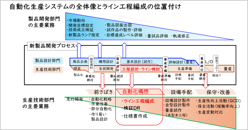 図 1 自動化生産システムの全体像とライン工程編成の位置付け